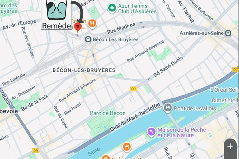 Le cabinet est situé en face de la gare de Bécon les Bruyères.